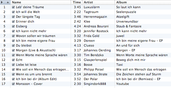 Show playlist– many of these artists have music available on iTunes and Mediamarkt, so if you like it, support it!